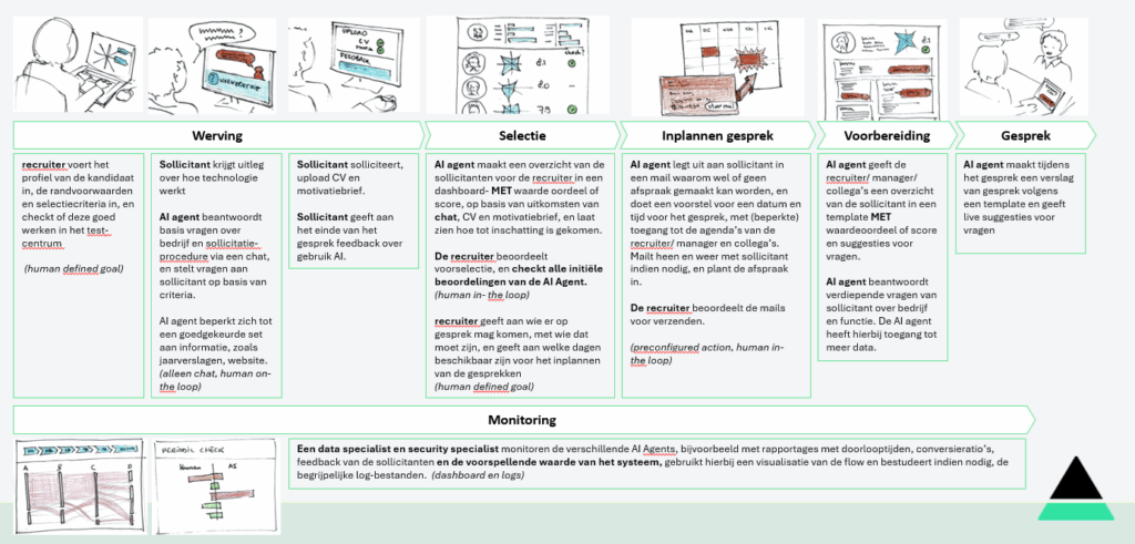 Gedurende het hele traject gebruiken we visualisaties van de nieuwe (werk)processen om complexiteit te reduceren en een goed gedeeld begrip te krijgen. Maar ook voor (ontwerpend) onderzoek, door in een vroeg stadium te verbeelden kan je veel meer verschillende stakeholders meenemen in het innovatie proces. VBIStudio focussed zich op digitalisering, digitale geletterdheid en kunstmatige intelligentie. Uitgangspunten hierbij zijn het kunnen inspelen op veranderingen in de toekomst en het minimaliseren van de negatieve effecten en het optimaliseren van de positieve effecten.